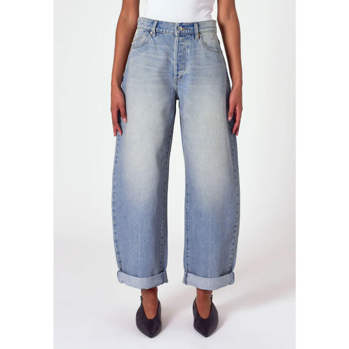 Gigi Barrel is a super high-rise jean that holds through the seat, balancing the sculptural leg silhouette. The hem can be worn rolled up or down for versatile styling.