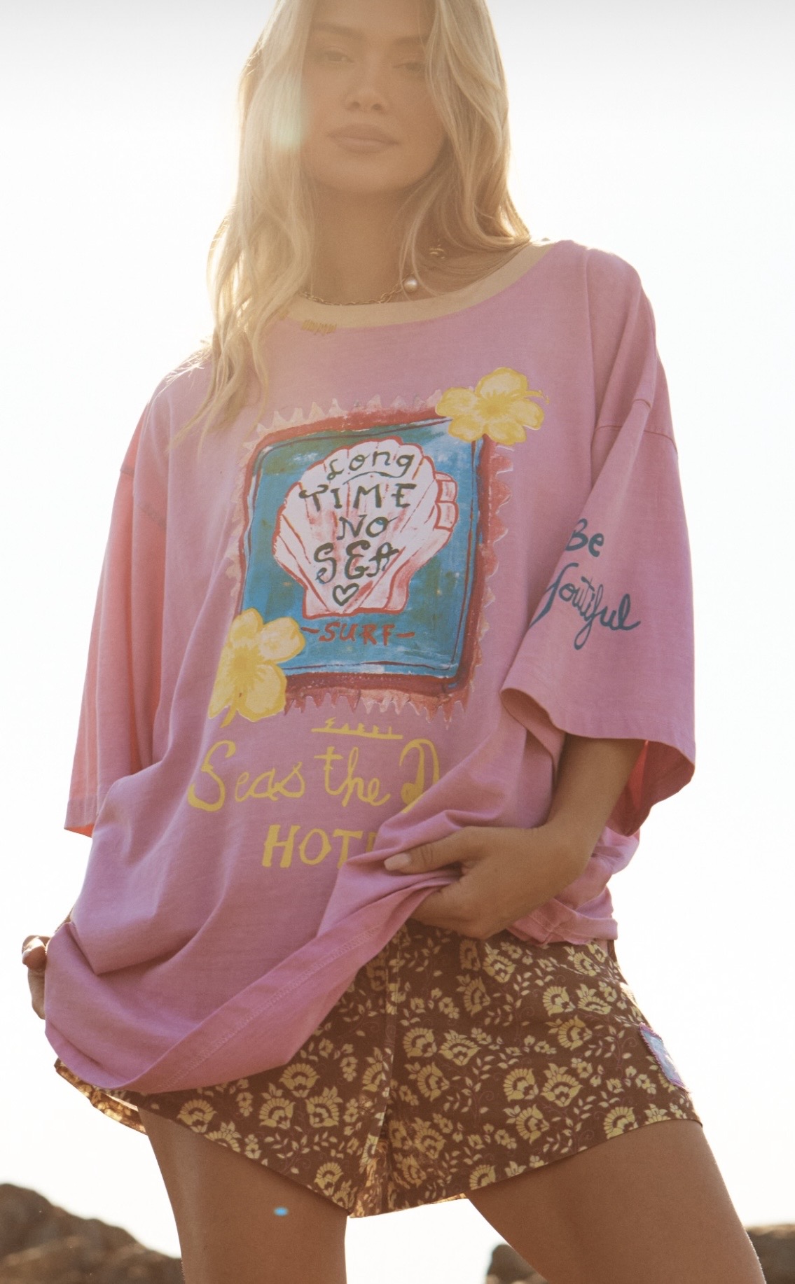 The Very Oversized Seas The Day Hotel Tee is for Sabbi lovers who belong by the ocean and refuse to dress like they don’t. Slouchy, oversized and dripping in salty attitude, this tee brings main-character energy to every beach day (or daydream about one).